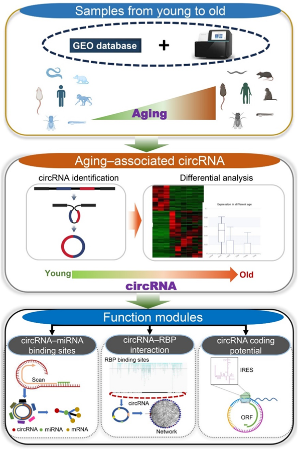 图1.?跨物种衰老相关circRNA的鉴定和CircAge数据库功能概览