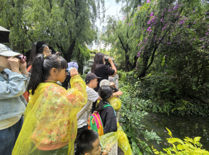 本次课程以黑颈鹤为主题,高级工程师杨劲松通过鸟类标本讲述了鸟类不同的特征,让学生观察并了解鸟类“千足百喙”的多样性,鸟类强大的飞行能力、高度发达的视觉和听觉。带领大家一起学习黑颈鹤与丹顶鹤的区别。昆明动物研究所行为遗传和进化研究组助理研究员伍和启以《高原鹤类中的大熊猫—黑颈鹤》为题讲述了黑颈鹤的特征、分布、全球迁徙情况以及黑颈鹤的?;さ戎犊沽艘惶糜腥さ目蒲Э?。同时在课堂上学习了鸟类卫星定位器是如何实现对鸟类的行踪定位进行记录的。在老师的引导下,在莲花池公园水域附近观察到黄臀鹎一闪而过的身影、小鸊鷉从水面到水下的捕食过程、夜鹭飞行和栖息的方式、灰喜鹊育雏等现象,直观的在自然中学习鸟类知识、了解鸟类特点,真正让孩子们探索了大自然,去发现自然界的奥秘。